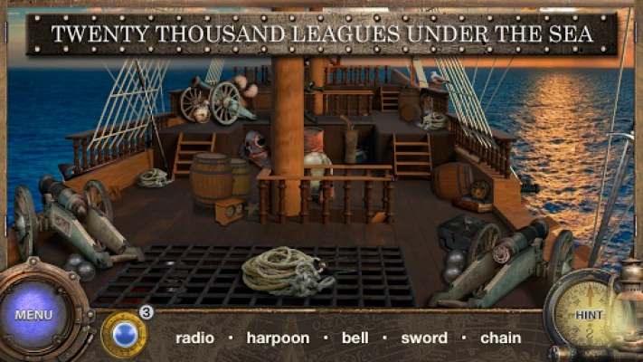 A find the hidden objects game based on "20 000 Leagues under the Sea", a famous novel by Jules Vernes. Download Captain Nemo - Find Items for free and enjoy playing the best mystery investigation game.